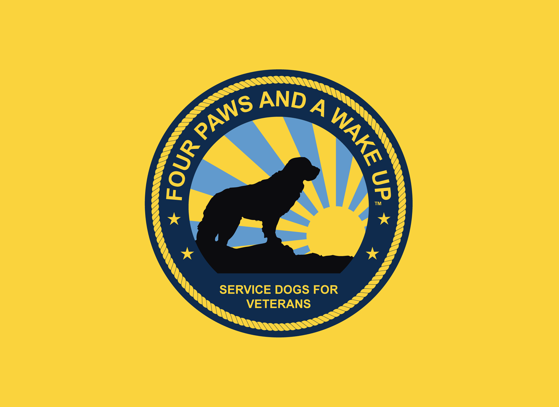 I was commissioned to design a logo for Four Paws and a Wake Up, a nonprofit dedicated to pairing service dogs with veterans. The organization wanted a visual identity that felt professional, trustworthy, and hopeful, while honoring both veterans and the service dogs who support them.